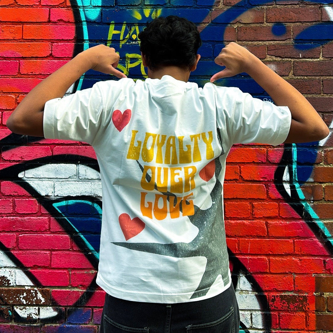 This is the first official drop from our brand — the Loyalty Over Love shirt. A statement that represents what we stand for: staying solid, staying real.
